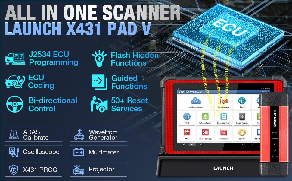 Launch X431 Pad V Full System Obd2 Car Diagnostic Tool 31 Reset Service Obd Scanner For Mechanics Ecu Online Coding And Bidirectional Vehicle Diagnostics J2534 Rp1210 Can Fd Oe